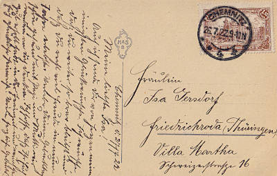 Inlandspostkarte vom 26.07.1922 (8. Periode) frankiert mit einer Marke a 1,50 Mark (=1,50 Mark) |
