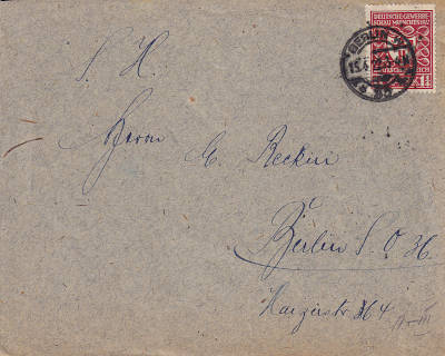 Ortsbrief (1-20 g) vom 15.04.1922 (7. Periode) frankiert mit einer Marke a 1¼ Mark(=1,25 Mark)