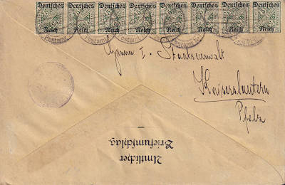 Inlandsbrief (1-20 g) vom 15.05.1920 (5. Periode) frankiert mit 8 Marken a 5 Pfennig (=40 Pfennig)