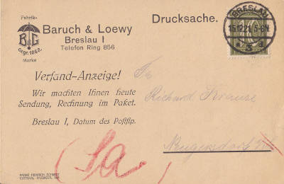 Inlandsdrucksachenkarte vom 15.12.1921 (6. Periode) frankiert mit einer Marke a 10 Pfennig (=10 Pfennig) |