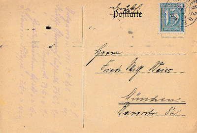 Ortspostkarte vom 10.09.1921 (6. Periode) frankiert mit 2 Marken a 15 Pfennig (=30 Pfennig)
