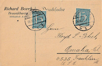 Inlandsdrucksache (1-50 g) vom 21.10.1921 (6. Periode) frankiert mit einer Marke a 15 Pfennig (=15 Pfennig)