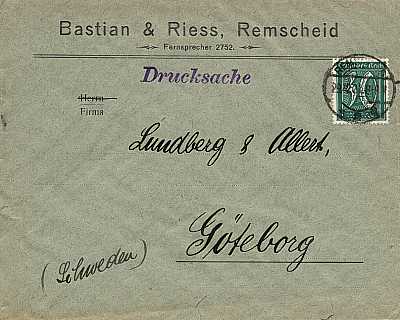 Auslandsdrucksache (1-50 g) vom 29.12.1921 (6. Periode) frankiert mit einer Marke a 30 Pfennig (=30 Pfennig) |