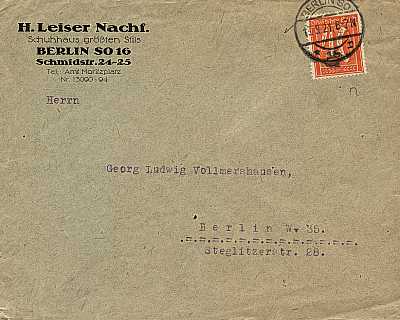 Ortsbrief (1-20 g) vom 13.09.1921 (6. Periode) frankiert mit einer Marke a 40 Pfennig (=40 Pfennig) |