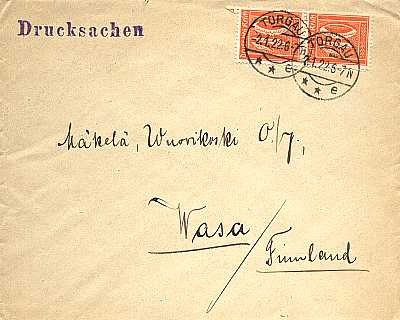 Auslandsdrucksache (1-50 g) vom 02.01.1922 (7. Periode) frankiert mit 2 Marken a 40 Pfennig (=80 Pfennig) |