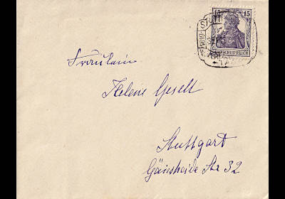 Ortsbrief (21-100 g) vom 25.09.1919 frankiert mit einer Marke a 15 Pfennig (=15 Pfennig)