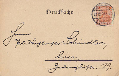 Inlandsdrucksache (1-50 g) vom 20.12.1920 frankiert mit einer Marke a 10 Pfennig (=10 Pfennig) |