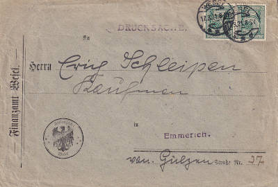 Inlandsdrucksache (1-50 g) vom 17.03.1921 frankiert mit 2 Marken a 5 Pfennig (=10 Pfennig) |
