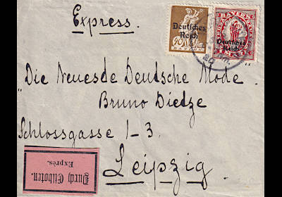 Inlandsbrief mit Eilzustellung (1-20 g) vom 18.09.1920 frankiert mit 2 Marken (=1,40 Mark, 0,40 Brief 1 Eilzustellung) |