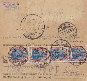Auslandspaketkarte (4 500 g, > 75 km) vom 06.10.1921 frankiert mit 3 Marken (=4 Mark) |