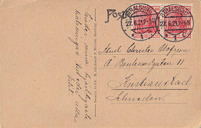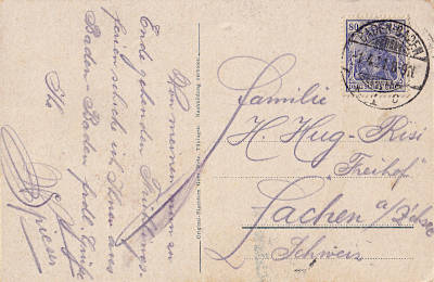 Auslandspostkarte vom 01.04.1921 frankiert mit einer Marke a 80 Pfennig (=80 Pfennig) |