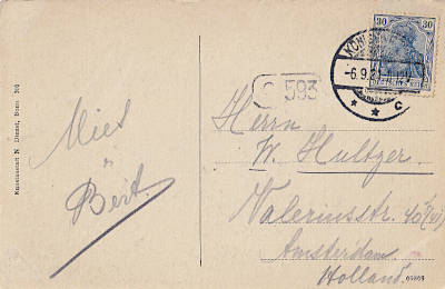 Auslandspostkarte bis 5 Worte vom 06.09.1921 frankiert mit einer Marke a 30 Pfennig (=30 Pfennig)