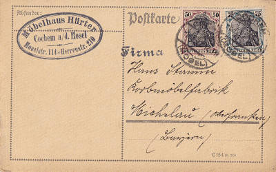 Inlandspostkarte vom 08.05.1922 frankiert mit 2 Marken (=1,25 Mark) |