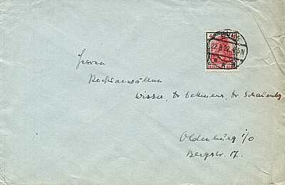Inlandsbrief (1-20 g) vom 21.07.1922 frankiert mit einer Marke a 3 Mark (=3 Mark) |