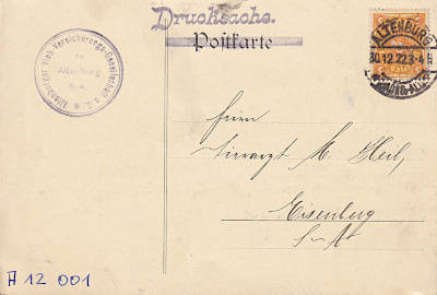Inlandsdrucksache (1-25 g) vom 23.12.1922 frankiert mit 2 Marken a 2,50 Mark (=5 Mark)