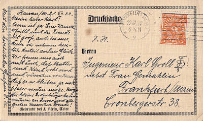 Ortspostkarte vom 22.12.1922 frankiert mit einer Marke a 5 Mark (=5 Mark)