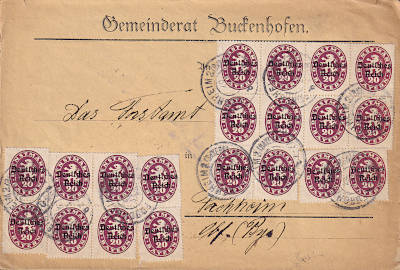 Ortsbrief (1-20 g) vom 23.01.1923 frankiert mit 8 Marken a 2,50 Mark (=20 Mark) |