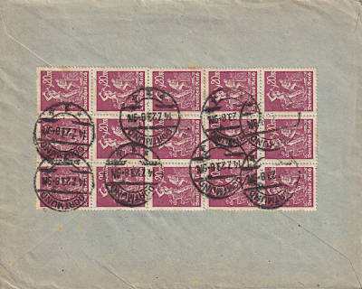 Inlandsbrief (1-20 g) vom 05.07.1923 frankiert mit 10 Marken a 30 Mark (=300 Mark) |