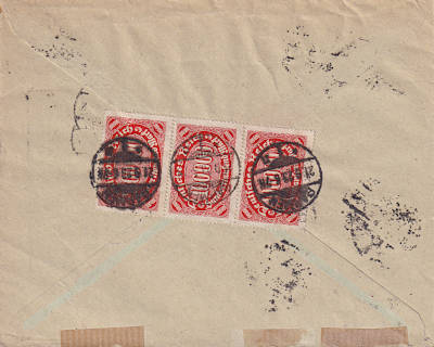Inlandsbrief mit Einschreiben (251-500 g) vom 29.09.1923 frankiert mit 4 Marken (=700 000 Mark, 450 000 Brief 250 000 Einschreiben) |