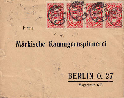 Inlandsbrief (1-20 g) vom 05.10.1923 frankiert mit 16 Marken a 125 000 Mark auf 1 000 Mark (=2 Millionen Mark) |