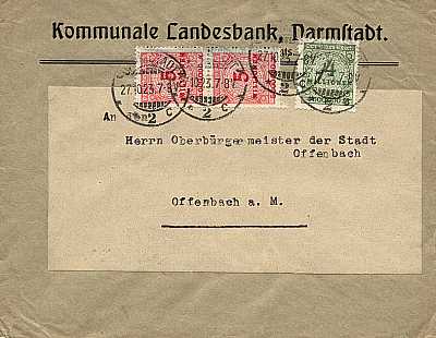 Inlandsbrief (1-20 g) vom 25.10.1923 frankiert mit 5 Marken a 2 Millionen Mark auf 200 Mark (=10 Millionen Mark) |