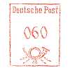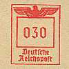 Einkreisstempel ohne Steg-segment oben mit fünf-stelliger Postleitzahl in rotoder blau