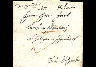 Brief vom 14.08.1817 nach Lorch mit kopfstehenden Ziffern |