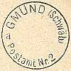 Einkreisstempel (bo3z2bu) "GMÜND (Schwäb.)/ (Datum)/ c Postamt Nr. 2"
