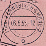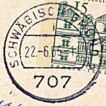 Zweikreisstegstempel (bozbu) "SCHWÄBISCH GMÜND 2/ a/ (Datum)/ 707"