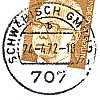 Zweikreisstegstempel (bozbu) "SCHWÄBISCH GMÜND 2/ e/ (Datum)/ 707"