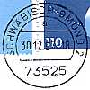 Zweikreisstegstempel (bozbu) "SCHWÄBISCH GMÜND 2/ a/ (Datum)/ 73525"