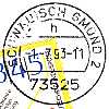 Zweikreisstegstempel (bozbu) "SCHWÄBISCH GMÜND 2/ h/ (Datum)/ 73525"