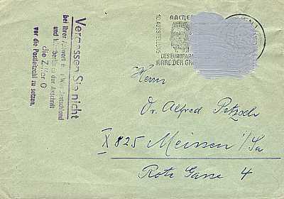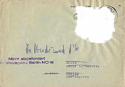 Brief in die DDR mit von der DDR-Post weiß übermalter Briefmarke