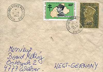 09.11.1971 Auslandsbrief frankiert mit 2 Marken1. Todestag Charles de Gaulle