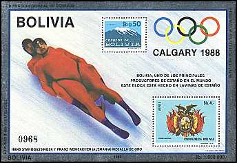 25.09.1986 Olympische Winterspiele Calgary gedruckt auf Zinn