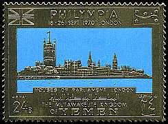 1970 Briefmarkenausstellung PHILYMPIA gedruckt auf goldener Metallfolie