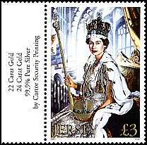 06.02.2002 50. Jahrestag der Krönung von Königin Elisabeth II. mit3 aufgeprägte Metallfolien: 2 in Gold (22 und 24 Karat) und eine in Silber
