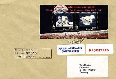 Foreign cover with registeration and airmail franked with one sheet 25th anniversary of the First Man Landing on the Moon