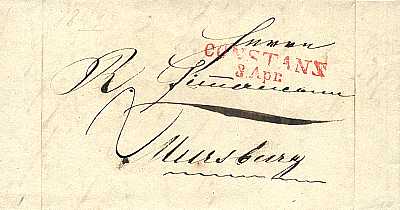 roter Zweizeiler "CONSTANZ/ 3 Apr." auf Brief nach Meersburg