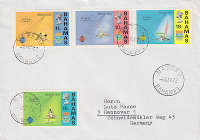Auslandsbrief frankiert mit 4 Marken Olympische Sommerspiele München