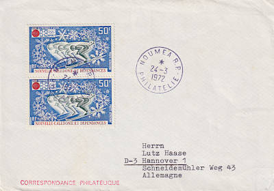 Auslandsbrief frankiert mit 2 Marken Olympische Winterspiele Sapporo