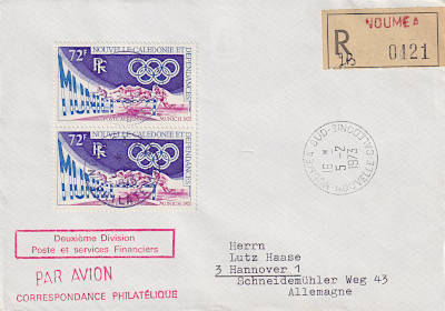 Auslandsbrief mit Einschreiben und Luftpost frankiert mit 2 Marken Olympische Sommer-spiele München