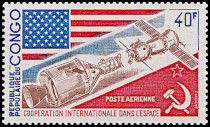 Raumkapseln Apollo 18 und Soyuz 19, ameri-kanische und sowjet-ische Flagge