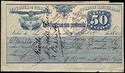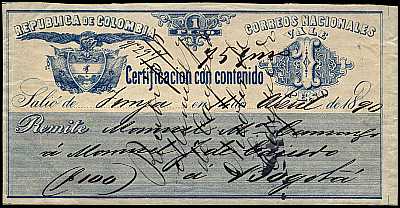 In Kolumbien gab es zwischen 1865 und 1905 spezielle Briefmarken für Wertbriefe. Diese