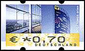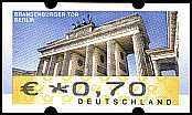Automatenbriefmarke mit Briefmarkenbilddruckzeichnung Brandenburger Tor oder Posttower