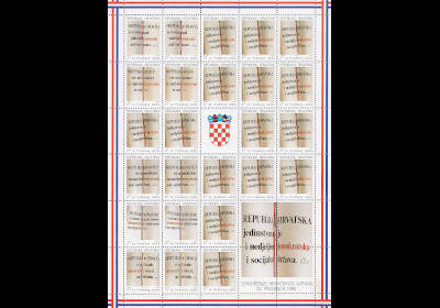 Zwanzigerbogen mit 19 unterschiedlichen Briefmarken und einem Zierfeld |