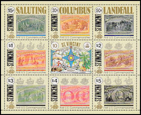 Neunerbogen mit 3 unterschiedlichen Brief-marken |