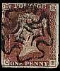 Elfenbeinkopf: Papierverfärbung von weiß nach bläulich bei einigen klassischen Brief-marken Großbritanniens bedingt durch eine Wechselwirkungen zwischen Bilddruckfarbe und Papier |