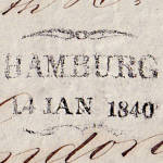 Schmetterlingsstempel: vorphilatelist-ischer Stempel aus Hamburg mit der Abbild-ung eines Zweizeilers mit Zierstücke oben und unten |