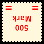 Supplemented Inverted Fake Postage Stamp Overprint: postage stamp with genuine postage stamp overprint with supplemented deceitful 180 degrees rotated horizontal bogus postage stamp overprint |